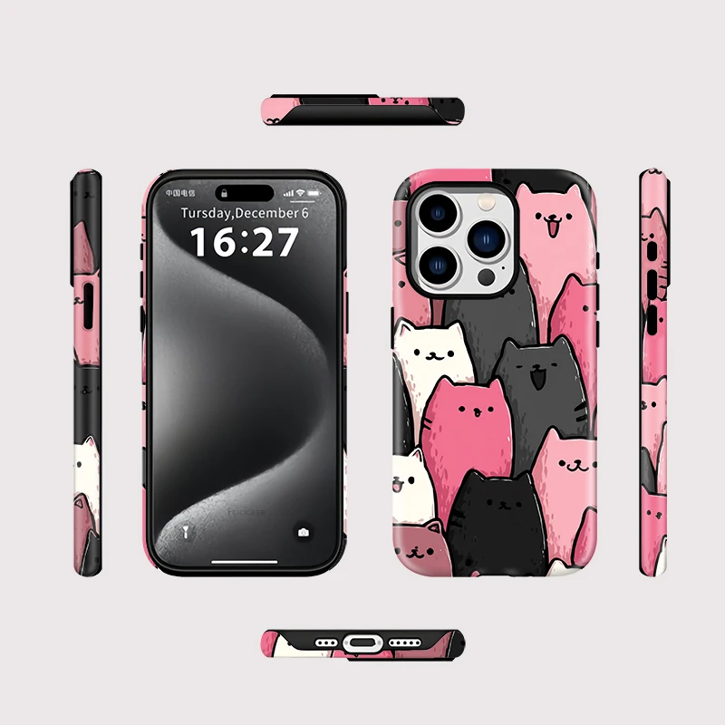 Lovely Cats For Magsafe Case For iPhone 16 15 ProMax 16 15 Pro 12 13 14 Hard Acrylic PC+TPU 2 IN1 Magnetic Cover