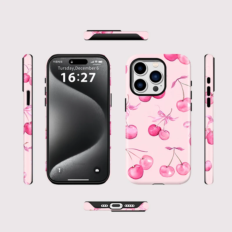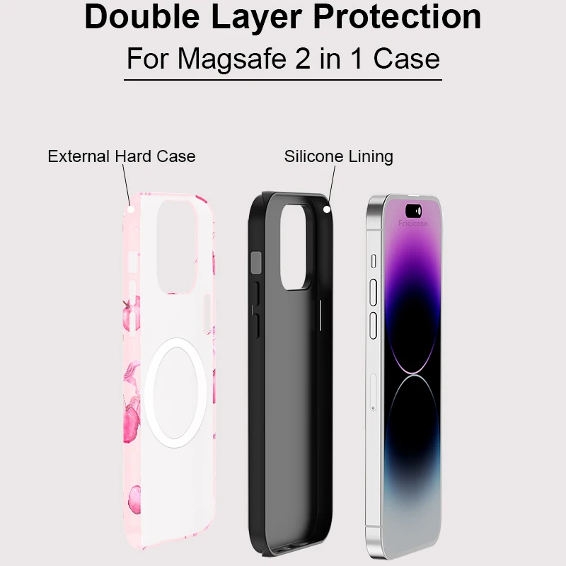 Floral Phone Case For iPhone 16 Pro Max 15 14 Plus 13 12 11 Cherry For Magsafe Wireless Charge Magnetic Double-layer Cover